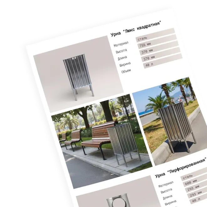 Если вам необходимо купить урны, скамейки или другие малые архитектурные формы для благоустройства территории — оставьте заявку на сайте. Наши специалисты проконсультируют вас, подберут оптимальное решение и рассчитают стоимость проекта с учетом всех требований.